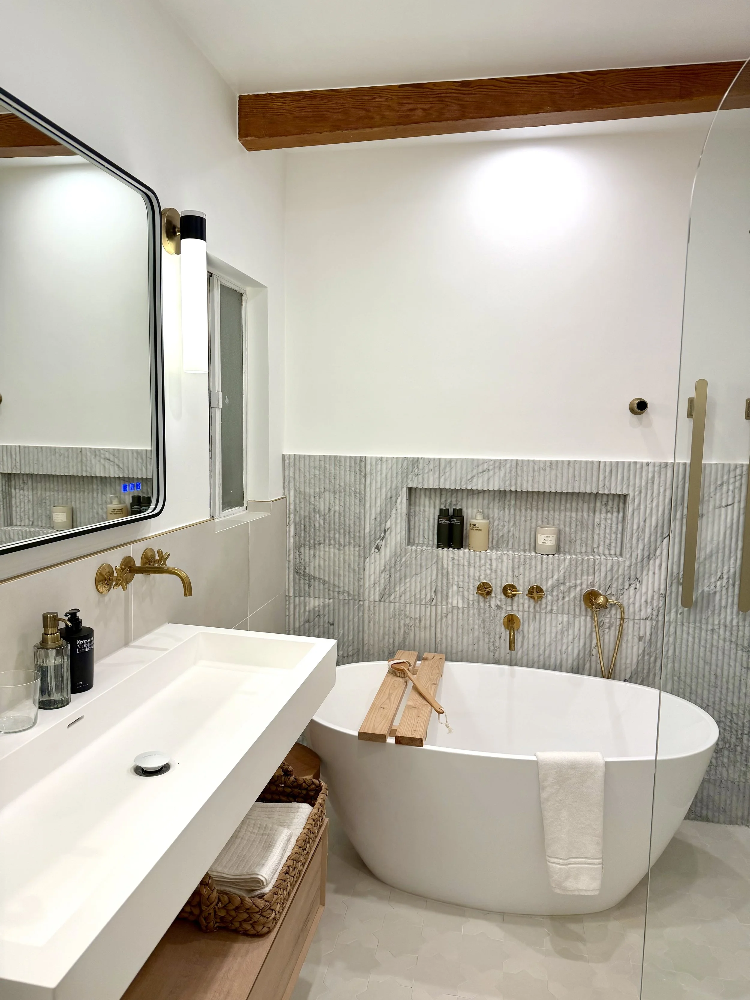 Rooms feel warm yet uncluttered, anchored in natural materials and soft lighting. The Spa bathrooms offer luxurious materials and space to relax. Premium queen beds with hotel-quality linens lets you settle in fully, whether you’re recovering from a long flight or easing into a slower rhythm. Every space is designed to feel considered - textures that invite touch, a layout that encourages calm, and subtle details that bring a sense of boutique comfort to daily life.